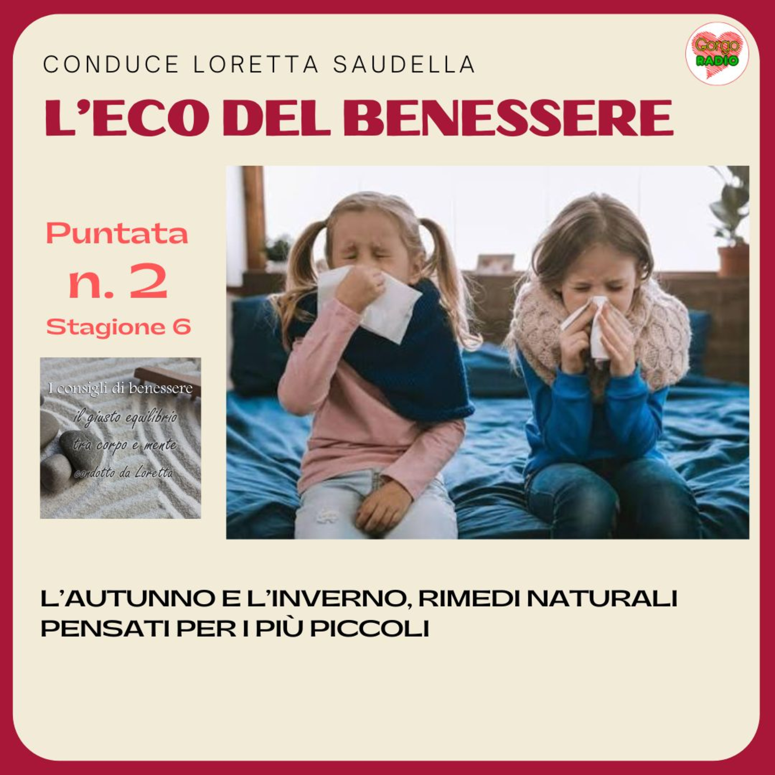 Loretta conduce "Ben Essere", ogni settimana su Gorgoradio.it L’argomento della settimana è:l’autunno e l’inverno, rimedi naturali pensati per i più piccoliVisita il sito di Loretta : https://www.lecodelbenessere.com/#iconsiglidibenessere
