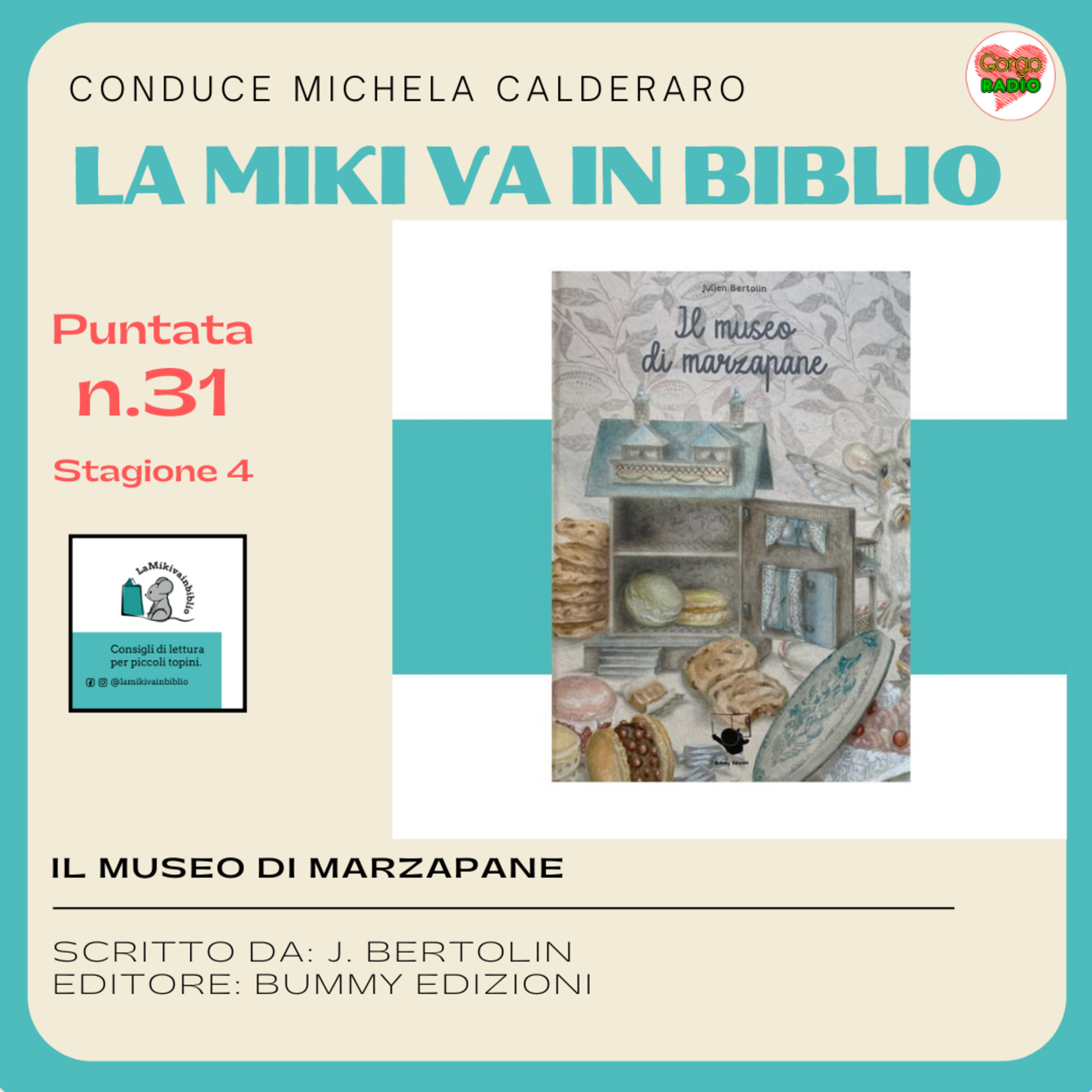 La Miki Conduce “Lamikivainbiblio”, ogni giorno su Gorgoradio.it e, in questa puntata recensisce il libro: Titolo: Il museo di marzapane Scritto da: J. Bertolin Editore: Bummy Edizioni Età consigliata: dai 7 anni Lo consiglio perché: Un racconto perfetto per provare insieme ai nostri cuccioli a “combattere” i pregiudizi. “C’è una storia di tante volte fa, dolce e amar, con una casa che profuma di buono…una casa che sembrava un sogno o forse una stregoneria” beh sta di fatto che “allora davvero non tutto è come sembra…se si impara a guardare in profondità c’è speranza in tutte le cose, anche in quelle che appaiono buie.” Lo dico sempre, leggere è un’ottima scusa, figuriamoci andare in biblioteca! Un bacio dalla vostra #lamikivainbiblio ❤
